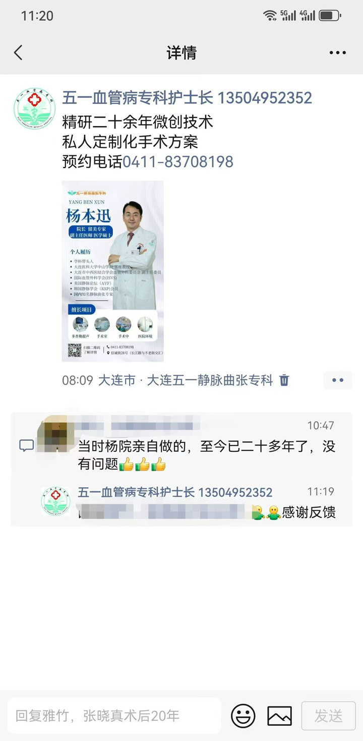 我疑似有静脉曲张,想多了解一下咱们医院的情况,有负责人没有,想具体了解一下…